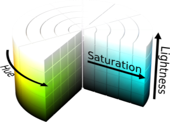 Hue, saturation og lightness er engelske begrep for henholdsvis fargetone, metning og valør. HSL er en måte å representere en farge på innenfor RGB-fargemodellen. I stedet for å angi hvor store mengder med rød, grønn og blå en farge består av, velger du en fargetone fra fargesirkelen, og angir metning og valør.